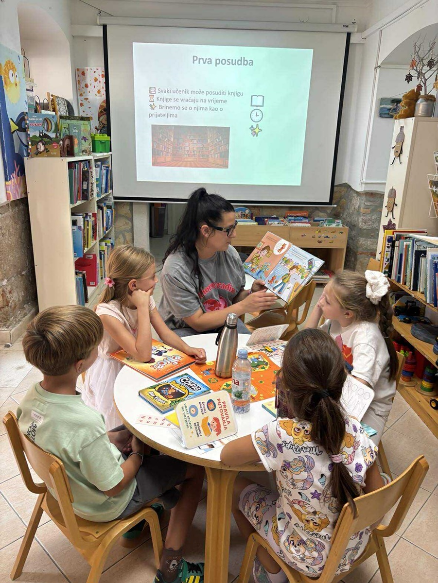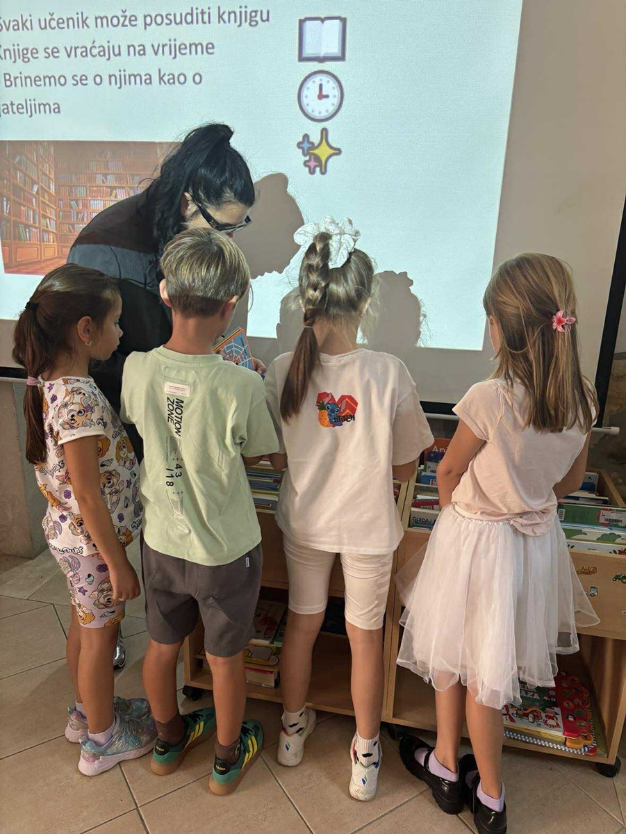 Učenici 1. razreda OŠ Vjekoslava Kaleba sa svojom učiteljicom Mirnom Markanović te učenici 1. razreda PŠ Jezera u pratnji učiteljice Ljiljane Perkov danas su postali dio naše knjižnice.Kroz veselu i interaktivnu prezentaciju upoznali smo ih s radom knjižnice i uslugama koje nudimo, proveli ih kroz odjele, a potom im omogućili i da odaberu knjigu za svoju prvu posudbu. Zajedno smo pročitali i priču “Volim školu” koja je uljepšala njihov boravak. Poseban trenutak bio je uručenje njihovih članskih iskaznica i “Čitateljskih putovnica”, s kojima će započeti svoje prvo pravo putovanje u svijet knjiga i priča.